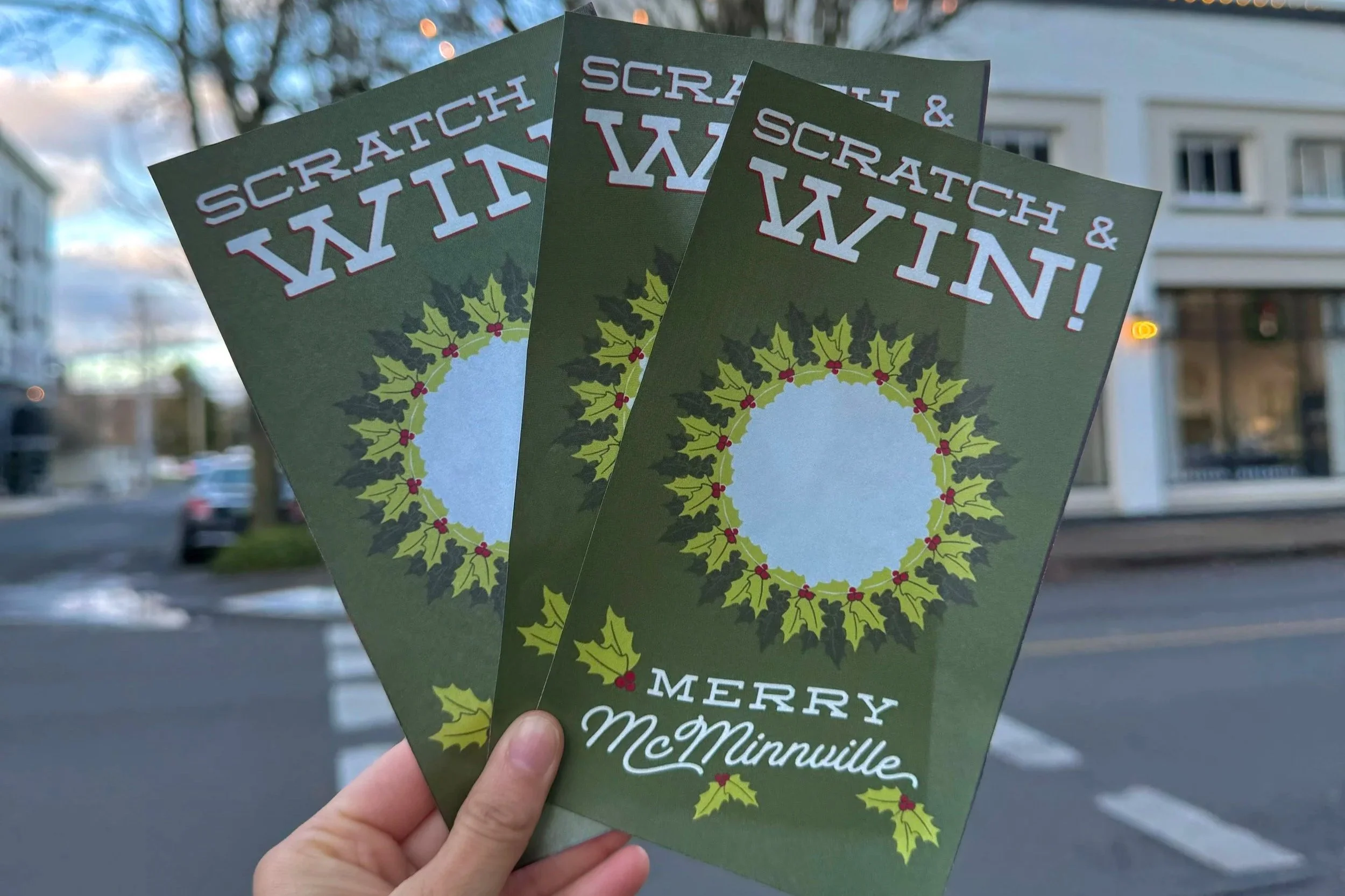 Shop, scratch, win! Spend $25+ at participating Merry McMinnville businesses and get your scratch-off ticket for a chance at festive prizes.